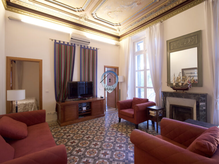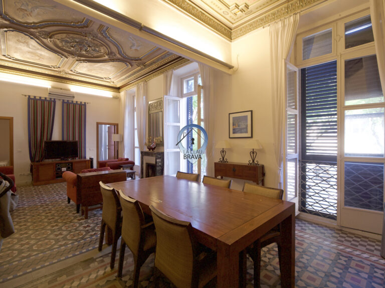 Ubicada en plena Rambla principal de Sant Feliu de Guíxols, esta propiedad señorial de esquina (sí, la que da a dos calles y presume de ello) fue construida en 1900, pero en 2006 se hizo una reforma integral que respetó lo que tenía que respetar —esos techos pintados a mano no se tocan— y mejoró todo lo demás.